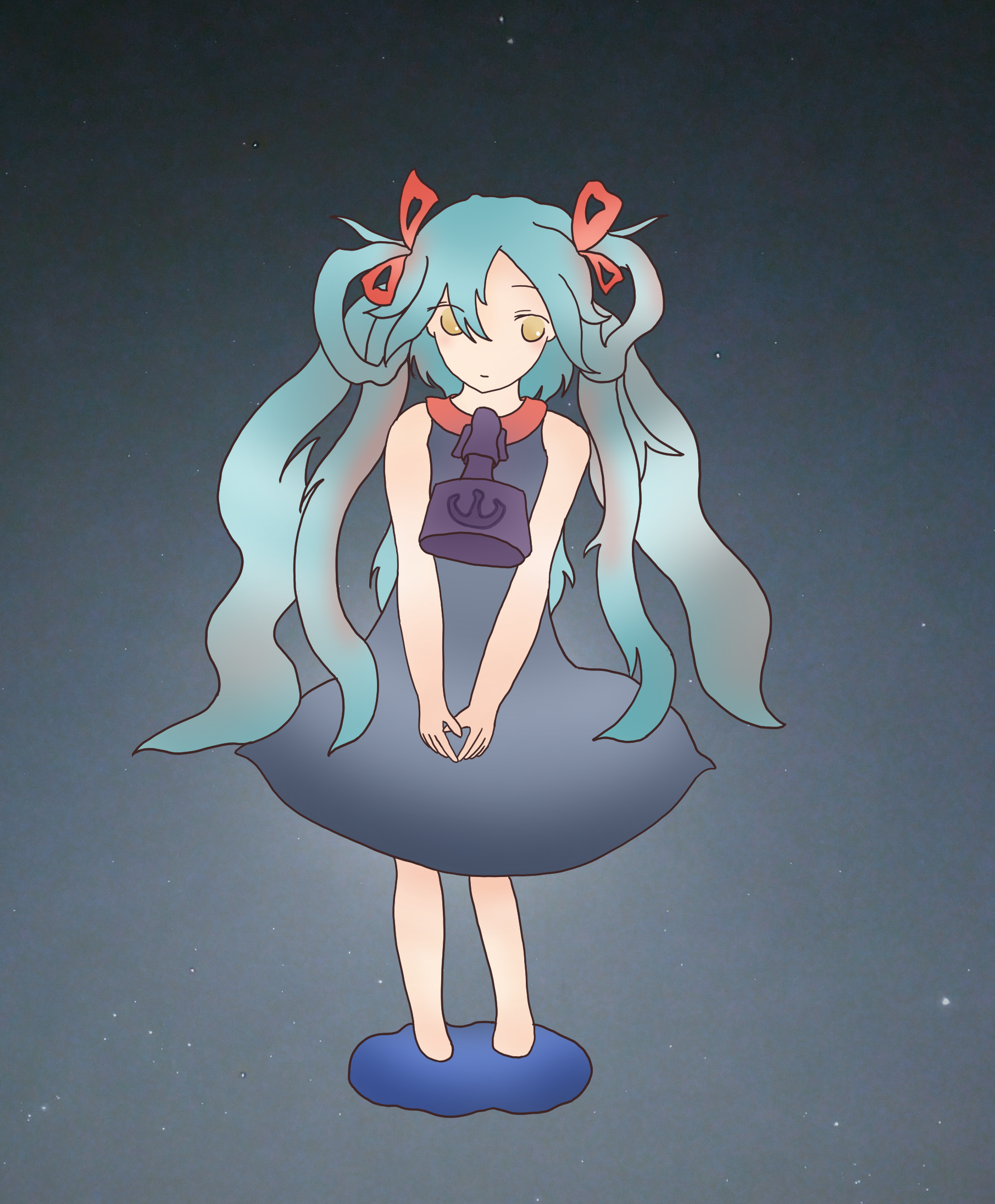 星夜の月明りの中で、こちらを見透かすようなジト目で見つめるモードちゃんのイラストです。